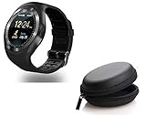 GPS#7: Tronomy Touch Screen Bluetooth Smart Watch with SIM Card & Sd Card Slot with Round Pouch Earphone Carrying Case for Honor 7X & iPhone 8 Plus Mobile