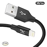 #10: Wayona Nylon Braided WN3LB2 USB Syncing and Charging Cable sync and Charging Cable for iPhone, Ipad, (3 FT Pack of 2, Black)
