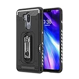 #3: CUBIX Plastic Robot Armor Slim Hybrid Defender Bumper Shock Proof Back Case with Kick Stand for LG G7+ ThinQ (Black)